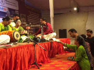 Sakkani raja margamu, a grand composition by Thyagaraja in raga Kharaharapriya received much appreciation from the audience for Gayathri's rendering the kriti, Charulatha's support on the violin and the tani avarthanam by the percussionists.